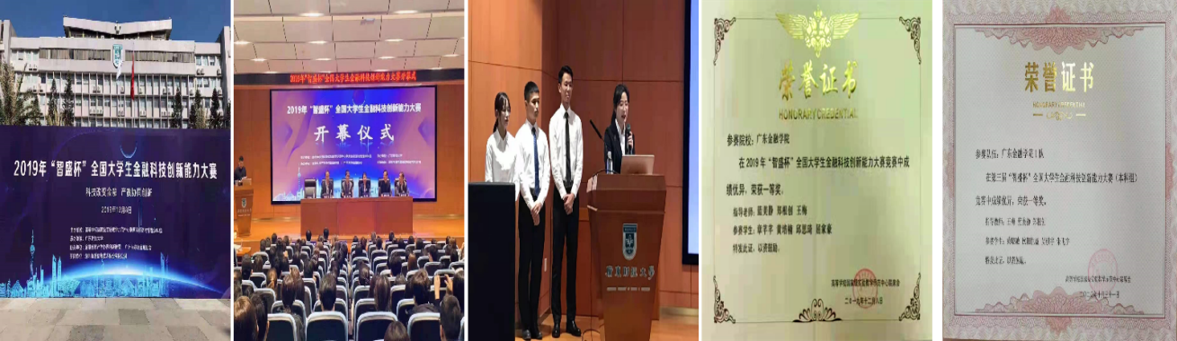以学生为中心,注重对学生应用能力和创新能力的培养,本专业学生参加广东大学生科技创新培育专项资金哲学社会科学类“攀登计划”、“互联网创新创业大赛”共获奖9项,参加“全国大学生金融精英挑战赛”、“挑战杯”广东大学生创业大赛、“挑战杯”广东大学生课外学术科技作品竞赛共获奖24项,获得中国金融教育发展基金会“普惠金融”社会实践奖项4项,获得“智胜杯”全国大学生金融科技创新能力大赛奖项2项,参加美国大学生数学建模竞赛、全国性或全省性的知识竞答、英语竞赛等赛事共获奖10项。