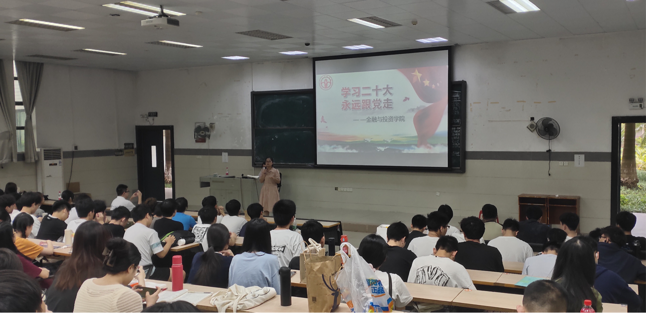 最后,梁老师通过将党的二十大精神与青年大学生相结合,对参会的学生党员该怎么做提出了建议。作为青年大学生,不仅要跟党走,同时要为了社会,为了国家,发扬奋斗精神,做到敢于斗争、敢于胜利。
