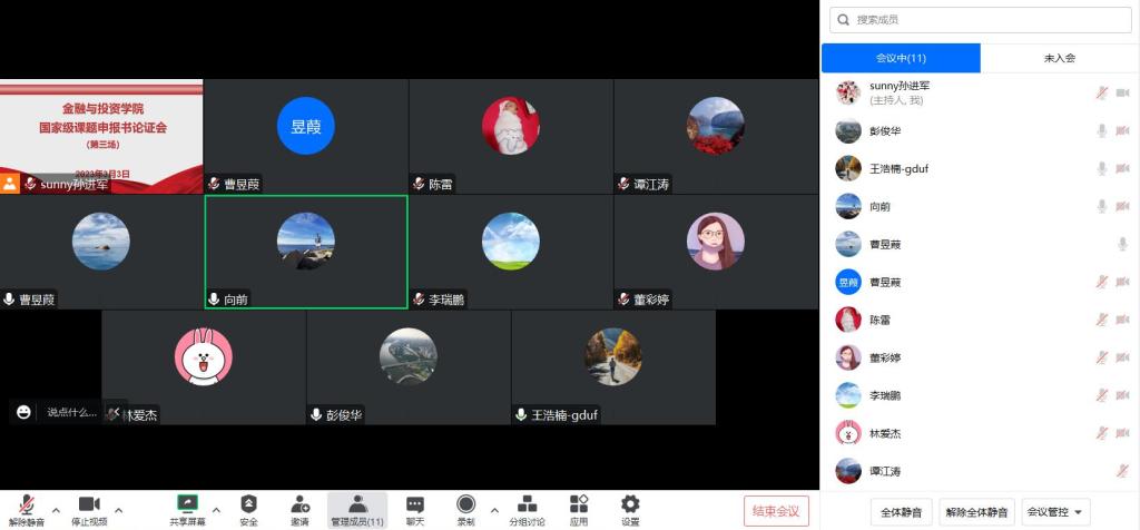 基于国家级课题申报的论证进展,继举办了第一场、第二场申报书论证会之后,yl23411永利集团再次组织课题申报人、以线上腾讯会议的方式举行了第三场国家级课题申报书论证会(2023年3月3日晚上19:40-22:50)。院长项后军教授、副院长孙进军副教授,特邀论证人陈雷博士、李瑞鹏博士,以及已提交国家级课题申报书的八位教师参加了本次论证会。