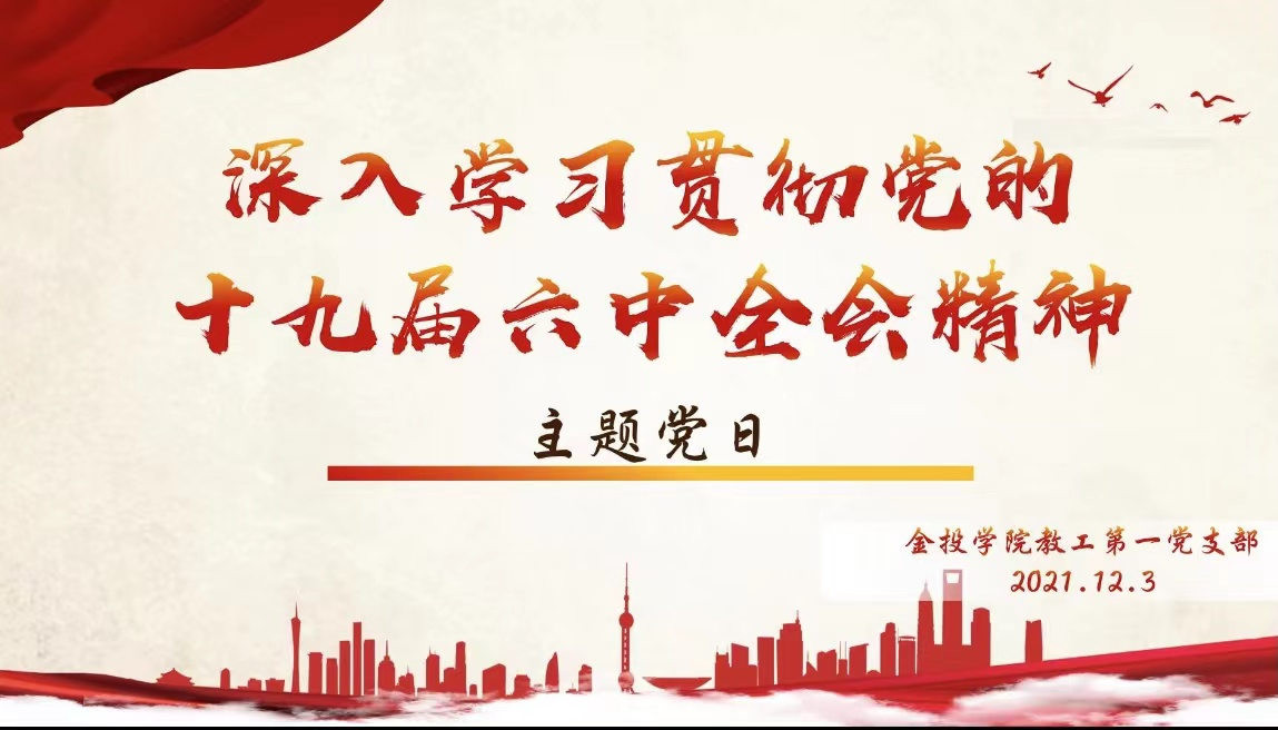 2021年11月8日至11日,中国共产党第十九届中央委员会第六次全体会议胜利举行!2021年12月3日金投学院教工第一党支部在学院会议室召开主题党日活动:党员通过学习党的十九届六中全会精神,结合自身工作性质,畅谈学习心得体会。本次会议由支部书记王颖老师主持,部分党员参加会议并积极发言。