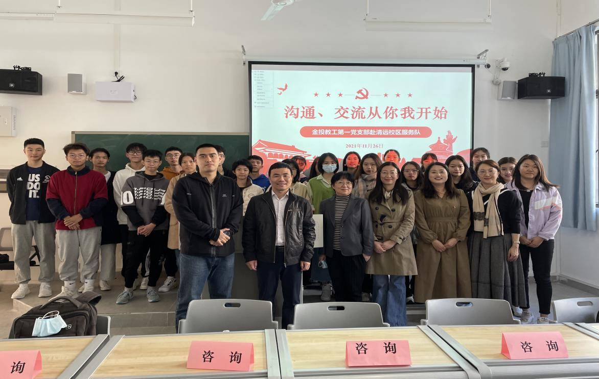 为了响应党委关于基层支部共建号召,贯彻党的十九届六中全会精神,把党史学习教育落实到细处;贯彻学校党委提出的建立党员先锋岗、用好专业技能特长,服务身边人、办好身边事。为了推动党员常态化参与志愿者服务开展“教书育人”工作,深入推进“我为群众办实事”实践活动。金融投资学院教工第一支部成立了赴清远校区志愿服务队,2021年11月26日前往清远校区进行志愿服务队进行新生专业学习交流活动。