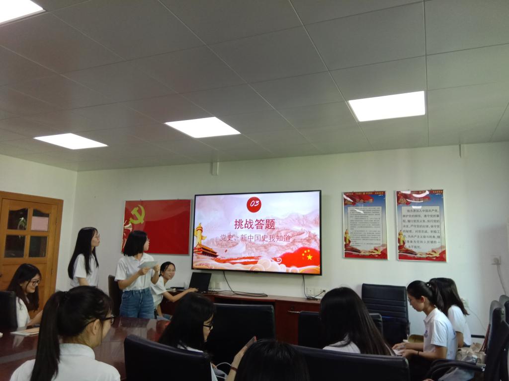 2019年10月1日,中华人民共和国成立70周年。70年来,在党的正确领导下,在中国人民及海内外华人同胞的共同努力下,新中国取得了举世瞩目的成就,民族独立、国家富强、百姓安居乐业,中华儿女正式踏上了实现民族复兴梦想的伟大征程,昂首迈入了新时代。本次组织生活会以“庆祝中华人民共和国成立70周年:不忘初心、牢记使命”为主题。在会上,本支部开展了“三重活动”——重温入党誓词、重忆入党经历、重问入党初心。在主持人的带领下,全体党员同志在党旗下庄严宣誓,不忘入党初心。而后,本支部党员陈佳娜同志、林明芳同志、杨晓同志等都向我们分享了其入党的经历和初心,表明了作为一名学生党员,我们当不忘自己的初心,肩负使命、砥砺前行。紧接着,本支部开展了“党史、新中国史我知道”的挑战答题活动,各党员同志积极抢答,你追我赶。最后,获胜队伍代表姚玺同志发言,他强调70年来新中国历经风雨。我们青年一代要铭记历史,坚定信念,守初心、记使命,努力奋斗,不断前行。在他的号召下,本支部党员共同合唱了《我和我的祖国》,用歌声来表明自己的爱国热忱!