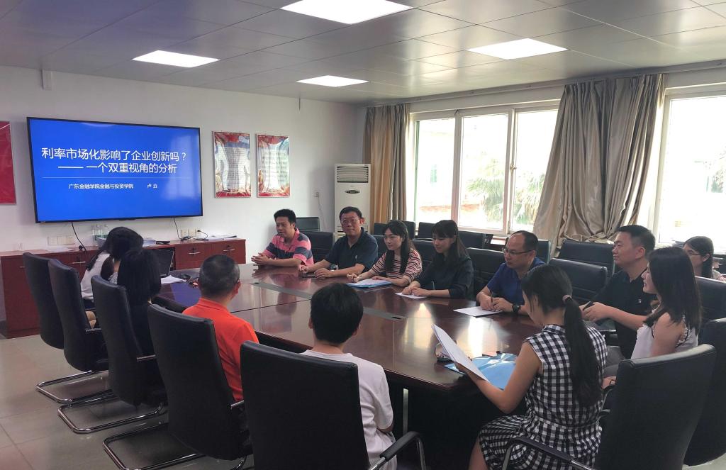 报告会开始,院长项后军教授对各位老师的积极参与表示欢迎和感谢,并宣布论文报告会开始。随后,卢垚老师报告了关于利率市场化与企业创新方面最新的研究成果,钱崇秀博士从研究思路,理论推演和实证结果等方面进行了细致的点评,郑荣年副教授从理论机制、模型设定、计量方法等方面提出了改进意见,胡妍老师从宏观金融背景角度提出了许多有益的意见,廖婧琳、孙进军、黄伟麟和新进教师代表丁树等分别与卢垚老师交流了研究方法和研究应用方面问题。最后,项后军院长对卢垚老师的研究成果进行了高水平的点评和总结。现场气氛活跃,与会老师均表示受益匪浅。