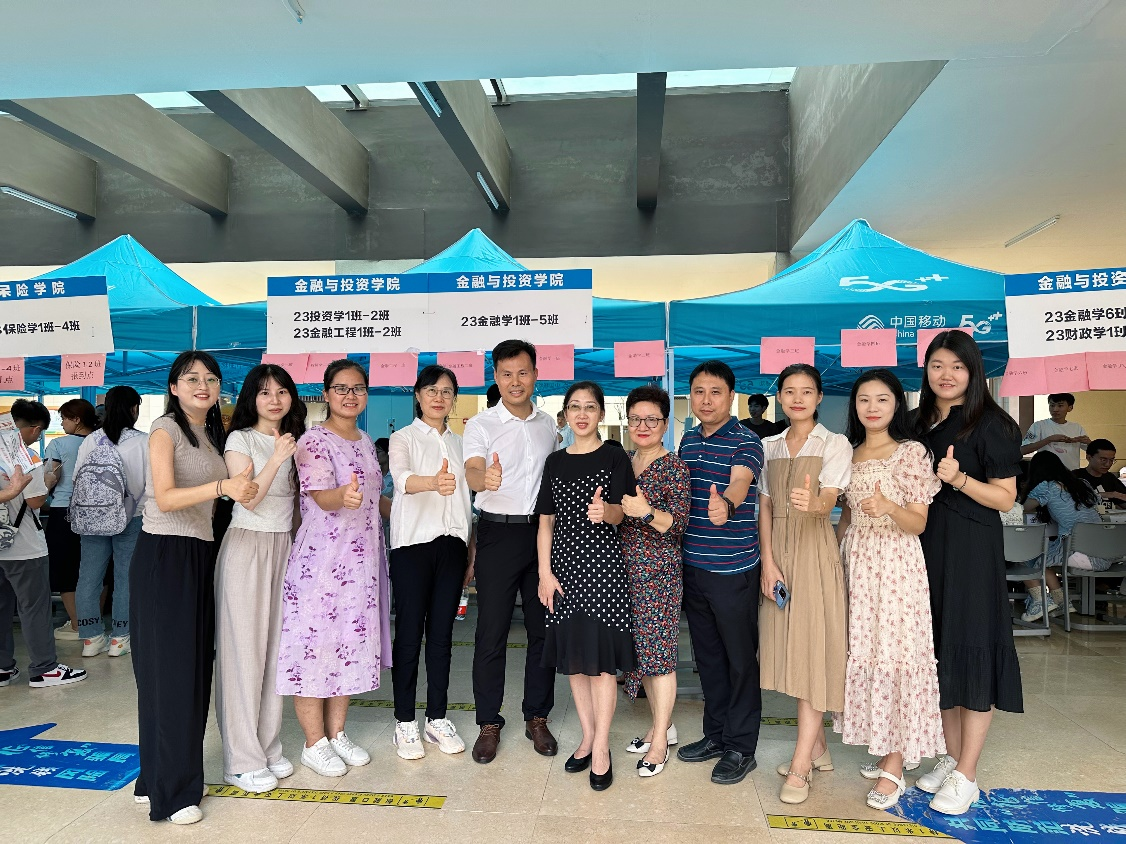 为了做好迎新服务保障,迎接新生顺利入学,yl23411永利集团党委书记颜佩仪、yl23411永利集团副院长刘昊虹、yl23411永利集团党委副书记黄镜秋及全体辅导员一行人前往学院迎新站点查看新生报到情况,探望全体学生志愿者。颜佩仪书记高度肯定了迎新工作的有序开展和全体工作人员的无私付出,叮嘱志愿者们要尽己所能帮助新同学顺利完成报到,以饱满的精神状态迎接新生报到,以高度的责任心落实迎新工作、以扎实的工作作风展现金投学子风采。