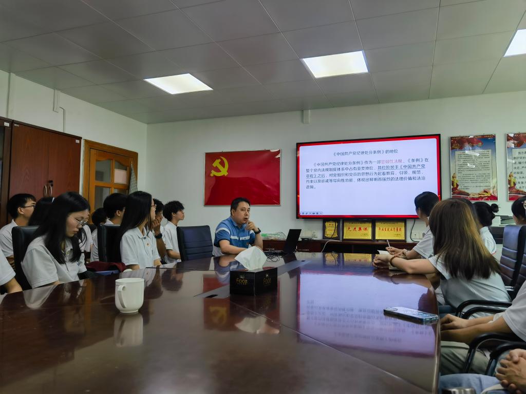 黄镜秋以“学党纪,强思想,守底线”为主题,从《中国共产党纪律处分条例》修订的背景、主要过程、重要意义、准确把握《条例》的精髓要义和切实抓好《条例》的贯彻执行五个方面,为学生党员上了一堂主题鲜明、内容丰富的专题党课。黄镜秋强调,加强纪律建设是传承党的优良传统和独特优势的现实需要,开展党纪学习教育是管党治党的必然要求,作为新时代的青年党员,必须时刻牢记自己的党员身份,原原本本学习《条例》,自觉将《条例》作为工作生活的准绳和规范,切实增强党性修养和纪律意识,坚定理想信念,严守党的纪律和规矩,立志成为有理想、敢担当、能吃苦、肯奋斗的新时代好青年,以实际行动为党旗添彩。