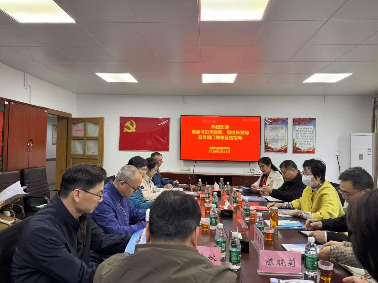 为深入推进学校新一轮本科教育教学审核评估迎评促建和本科人才培养工作,2025年2月23日上午,学校党委书记李建军、副校长黄琼、校办主任杨叶坤、质评中心主任胡朝晖、经贸学院李文秀院长等一行莅临我院开展检查,现场指导我院的迎接审核评估准备和人才培养改革推进工作。学院院长项后军、党委书记颜佩仪、班子成员及系主任、教研室主任、辅导员等参加了检查座谈会。