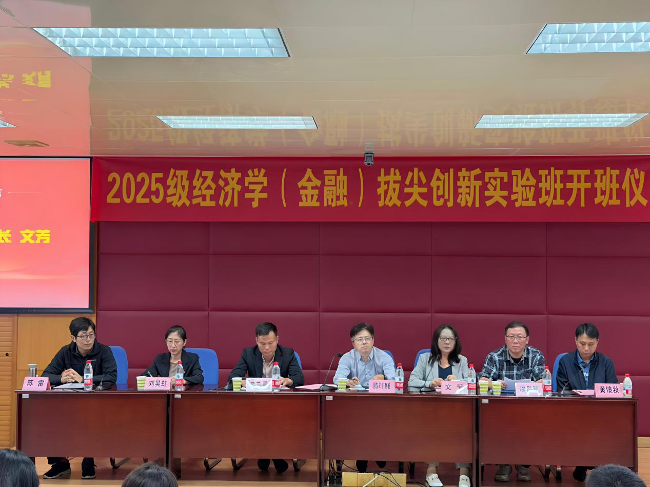 2025年10月24日下午,我校2025级经济学(金融)拔尖人才培养创新实验班开班仪式在行政楼五楼大会议室举行,校长易行健出席开班仪式并讲话。学校教务处、学生处、yl23411永利集团主要负责人、系主任、班主任、辅导员以及2025级经济学(金融)拔尖人才培养创新实验班全体学生参加开班仪式。仪式由yl23411永利集团党委副书记黄镜秋主持。
