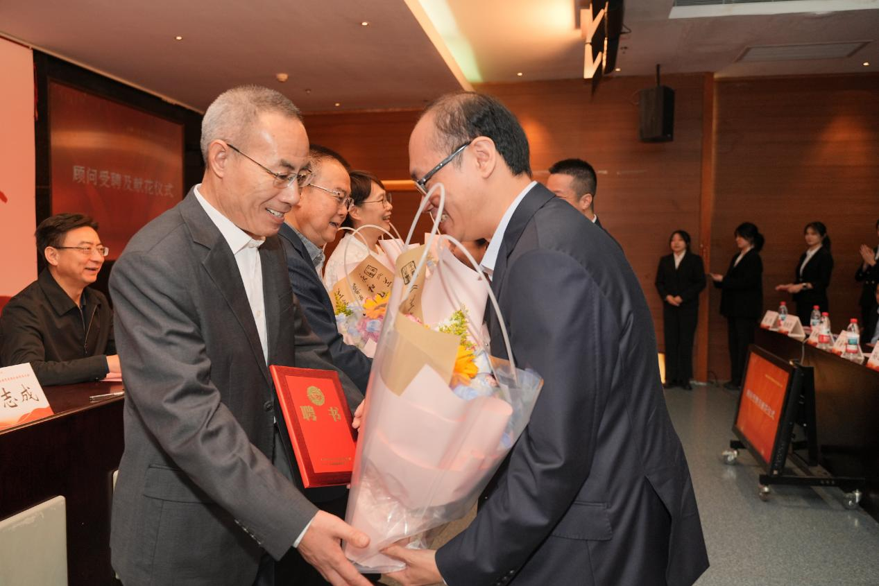 学校党委副书记刘春阳为首任会长朱杰颁发聘书