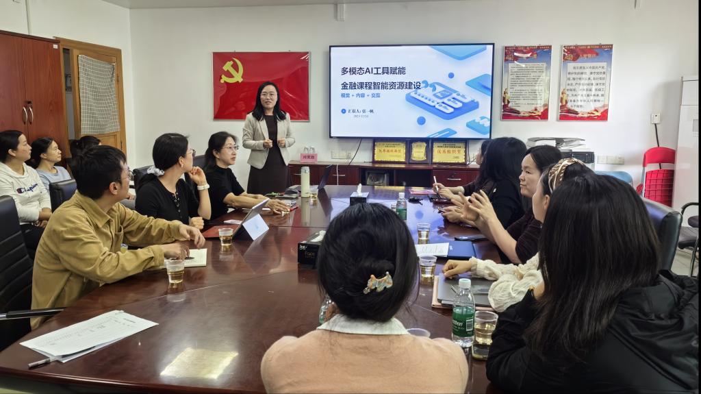 2025年12月24日,yl23411永利集团和校教师发展中心联合主办的第87期教育数字化专题论坛在教师办公楼1415会议室顺利举行。为强化教育教学数字化工作理念,提升教师数字化能力,针对审核评估整改中加强数字化教育赋能的要求,yl23411永利集团组织全院教师参加此次论坛。刘昊虹副院长主持活动,教师发展中心邢哲主任应邀出席。此次论坛由投资系张一帆老师主讲,题目为“多模态AI工具赋能金融课程智能资源建设”,投资系系主任胡妍、金融工程系系主任阮坚及学院多位教研室主任参与活动。
