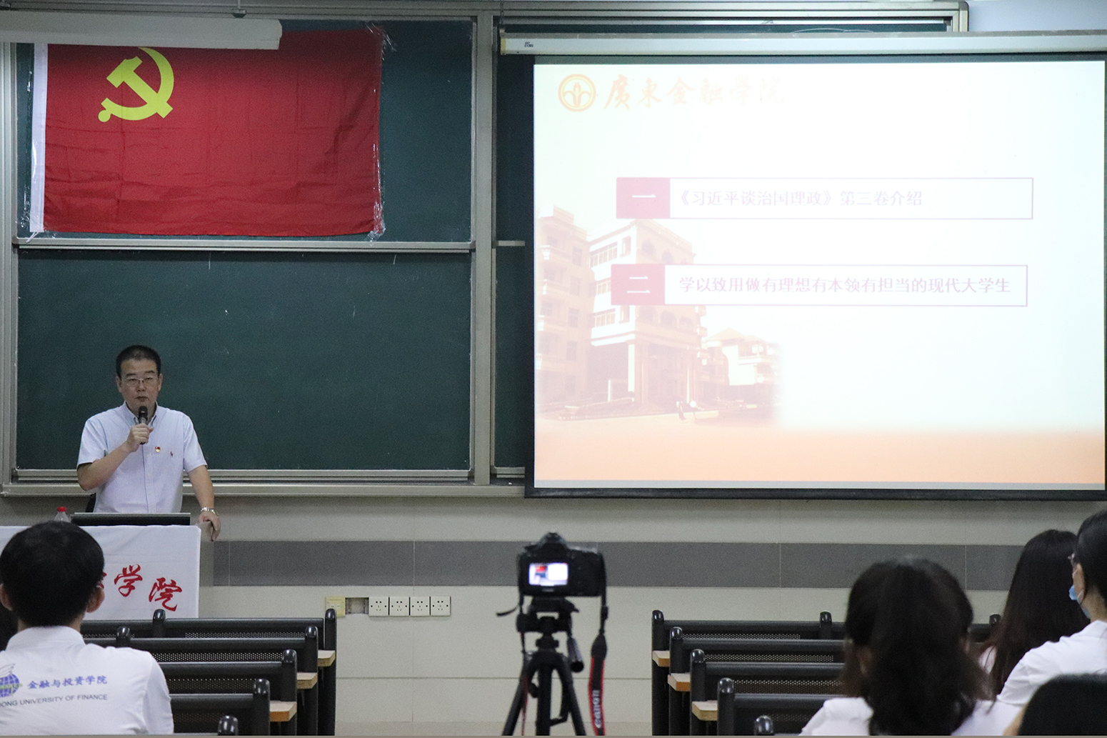 党总支书记周少龙培训主题为:学好用好《习近平谈治国理政》第三卷。周书记以《习近平谈治国理政》第三卷的解读为基础,结合习近平主席的“七个坚持”,引导新时代大学生要坚持自己的路,成为有抱负、有使命感的青年;新时代大学生的自信要建立在自身的能力之上,在学懂弄通上下功夫,表明学习跟进就是要紧跟最新形势,积极参与政治学习提升自己的能力,勇于承担新时代的历史责任。
