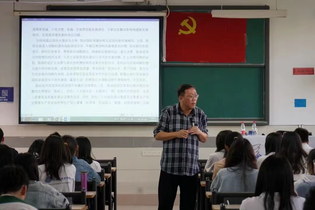 随后,项后军院长围绕“高质量发展与中国式现代化”展开专题讲解。项院长强调,高质量发展事关中国式现代化的建设全局,高质量发展是全面建设社会主义现代化国家的首要任务,要坚持以推动高质量发展为主题,把实施扩大内需战略同深化供给侧结构性改革有机结合起来,增强国内大循环内生动力和可靠性,提升国际循环质量和水平,加快建设现代化经济体系,着力提高全要素生产率,着力提升产业链供应链韧性和安全水平,着力推进城乡融合和区域协调发展,推动经济实现质的有效提升和量的合理增长。同学们在项院长生动的授课中,更加明晰了什么是“高质量发展”和“中国式现代化”。