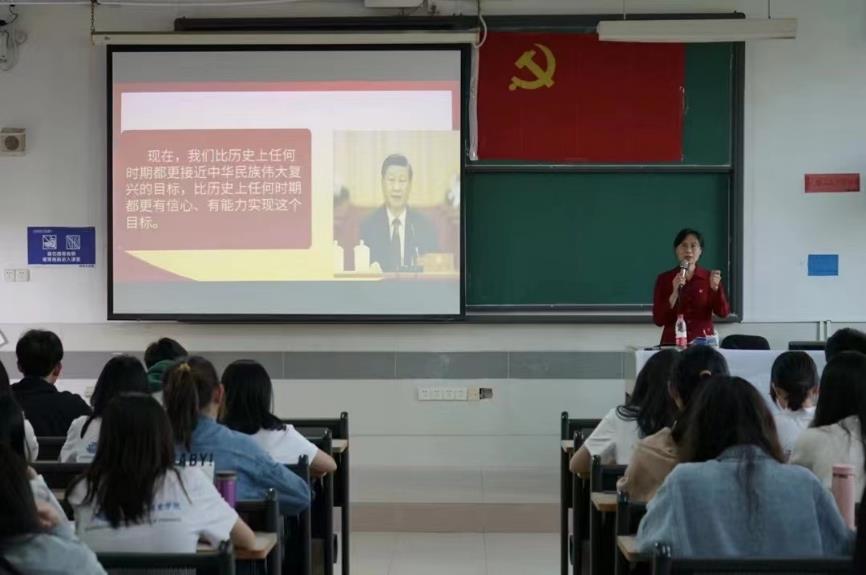 颜佩仪书记以“坚定中国特色社会主义道路自信”为主题,由浅入深带领学生们学习党的二十大精神,坚定道路自信的重要性。颜书记结合党史、新中国史、改革开放史和社会主义发展史,强调了坚持走中国特色社会主义道路的必要性,鲜明揭示我们的政治优势、理论优势和制度优势,教育引导青年学生不断增进对习近平总书记和党中央的情感认同和行动追随,持续增强对党和国家未来发展的信念信心。颜书记号召广大青年学生要坚定不移听党话、跟党走,怀抱梦想且脚踏实地,不负时代、不负华年,为中华民族的伟大复兴而努力奋斗。