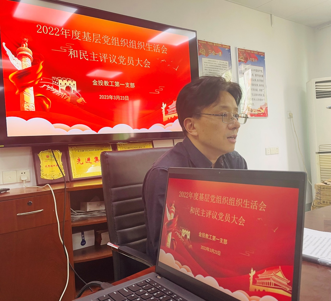 2023年3月23日,金投学院教工第一党支部在学院会议室召开“2022年度基层党组织组织生活会和民主评议党员大会”。会议由支部书记主持,易行健副校长、颜佩仪书记及支部党员参加了本次会议。