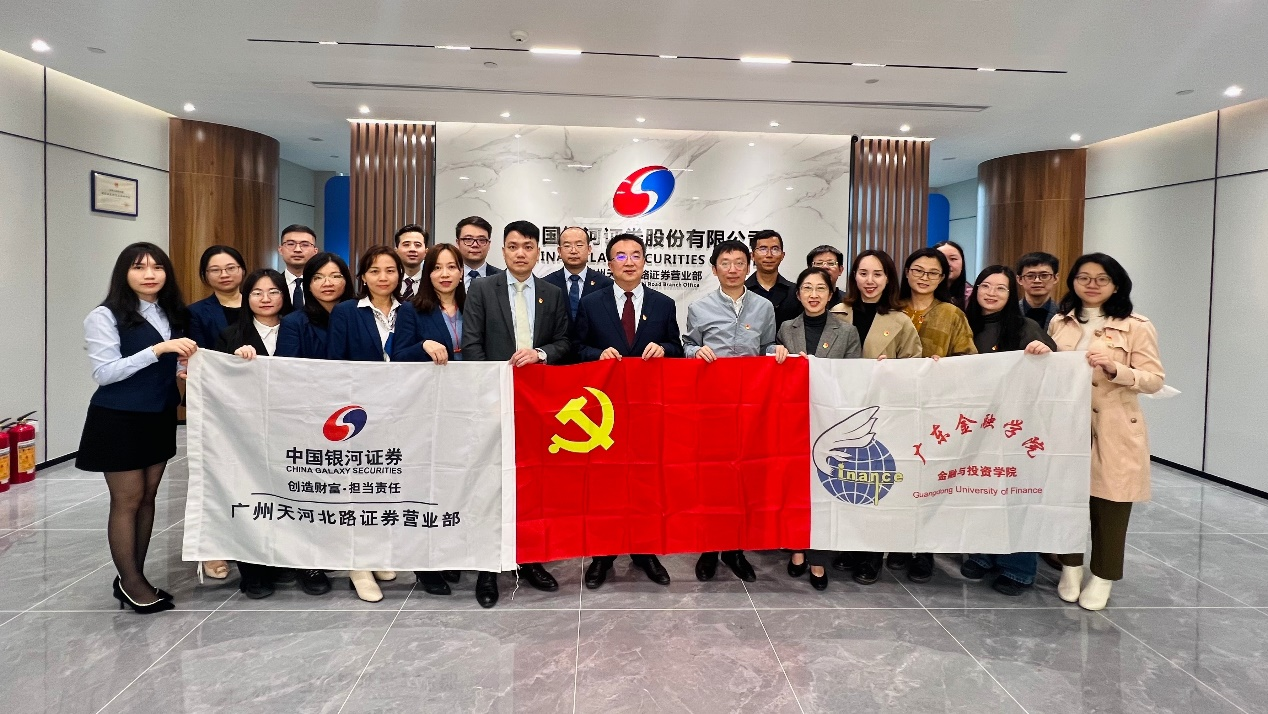 以习近平新时代中国特色社会主义思想为指导,全面贯彻、落实党的二十大精神,丰富党日活动载体,积极与企事业单位开展联学联建联动,不断提升支部凝聚力和向心力。2023年3月29日,我院教工第二党支部与中国银河证券广州天河北路证券营业部党支部开展“学习两会精神,凝聚奋进力量”主题的党建共建活动。我院教工第二党支部书记阮坚博士、学院副院长刘昊虹教授、宣传委员廖婧琳博士、章力博士、彭俊华博士、杨小欣博士、吴梦菲老师、侯嵘老师、韦筱老师、麦特克博士,银河证券广州天河北证券营业部党支部书记总经理陈奕昂同志、组织委员林伟彬、纪宣委员方爽、谢卫田经理、许作涛经理等共21名党员参与了本次活动。