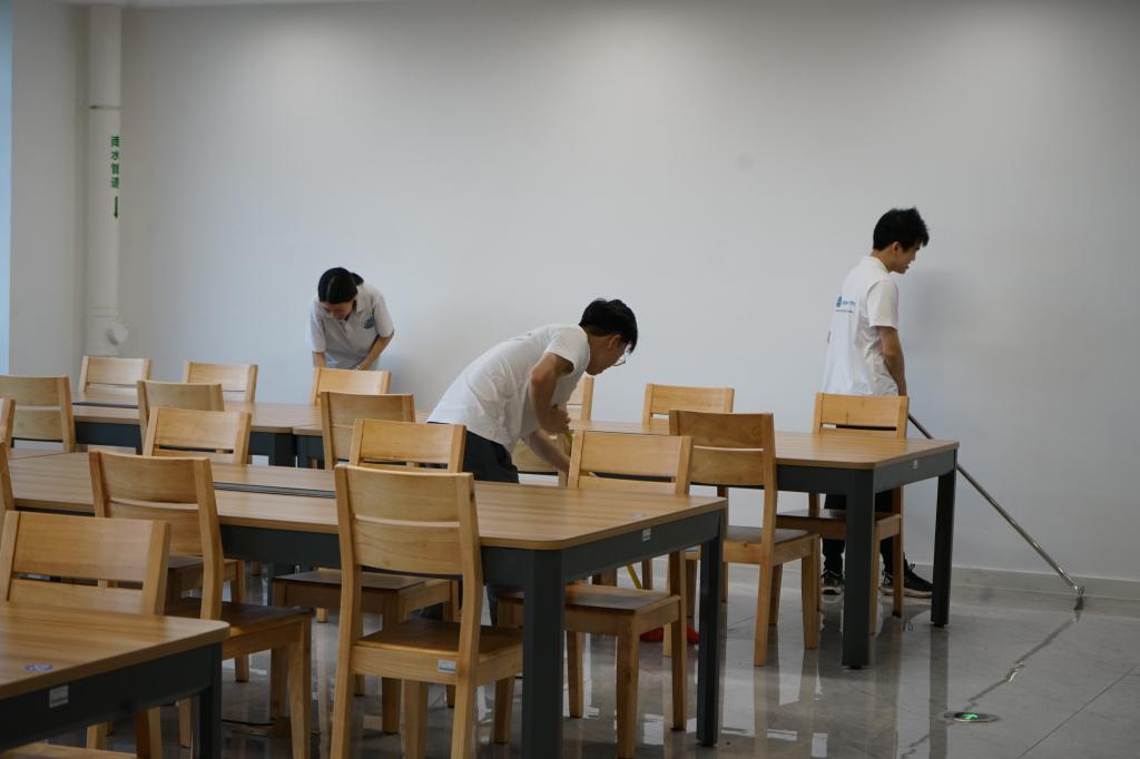 活动中,各党支部党员们精神抖擞,按照工作计划前往不同楼层进行打扫。党员们有条不紊地进行工作,拿着扫帚、拖把、抹布、水盆,认真地清理图书馆的各公共区域。在不影响图书馆工作人员正常工作的情况下,全体党员完成了打扫任务,并将工具有序地归位,整个活动井然有序。
