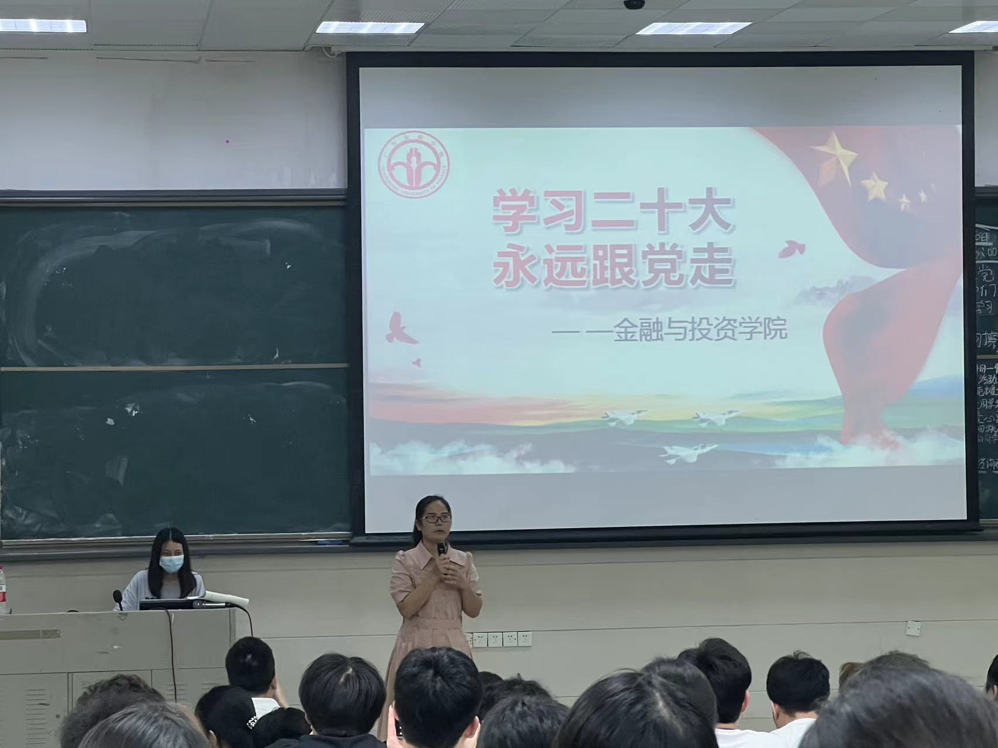 最后,梁老师通过将党的二十大精神与青年大学生相结合,对参会的学生党员该怎么做提出了建议。作为青年大学生,不仅要跟党走,同时要为了社会,为了国家,发扬奋斗精神,做到敢于斗争、敢于胜利。