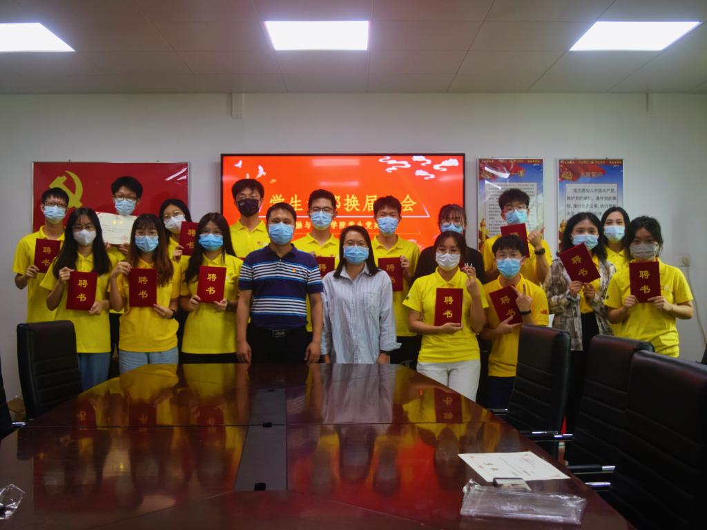 随后黄镜秋副书记为2019级学生党建干部颁发聘书,并合影留念。新旧学生党建干部还作了工作经验分享和交流。