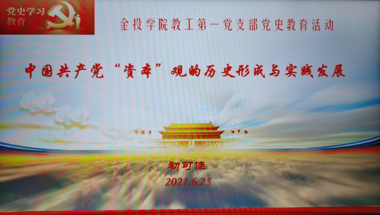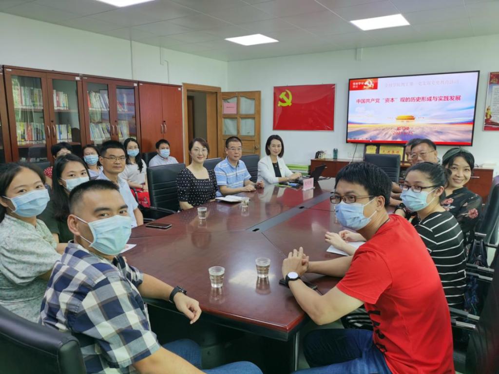 为贯彻落实中央关于党史学习教育的工作要求,推动党史学习教育走深走实,2021年6月25日下午,学院教工第一党支部邀请学校党史教育宣讲团成员初可佳教授作题为“中国共产党“资本”观的历史形成与实践发展”的主题党课。学院党总支书记周少龙、院长项后军、副院长陈辉以及第一教工党支部成员参加学习教育。党课由支部书记王颖同志主持。