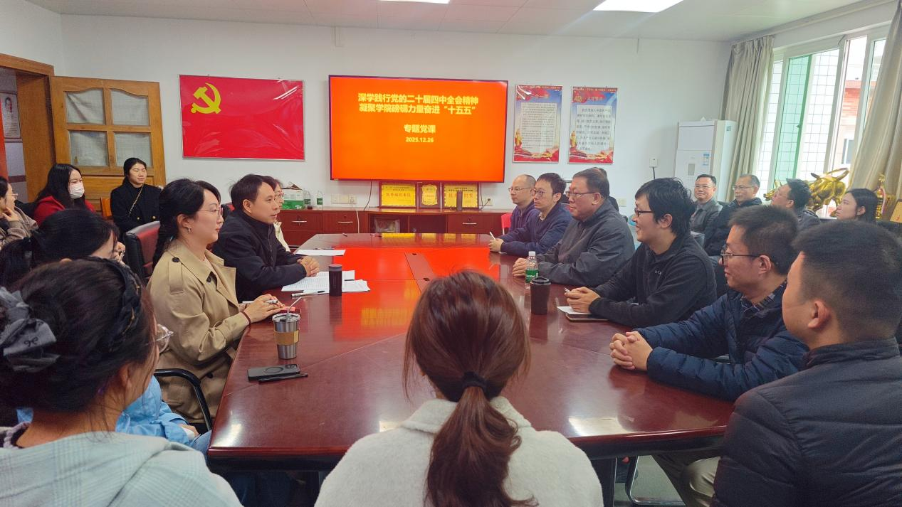 为深入学习贯彻党的二十届四中全会精神,将思想共识转化为服务学校“十五五”发展大局的实践动能,12月26日,yl23411永利集团党委面向全体党员举办“深学践行党的二十届四中全会精神 凝聚学院磅礴力量奋进‘十五五’”专题党课。学院领导班子、全体教师党员齐聚1415会议室,共学全会精神、共话使命担当、共绘发展蓝图。