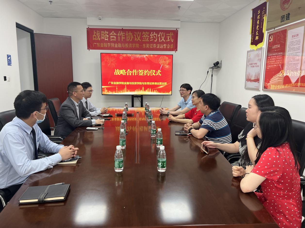 为落实全省高质量发展大会精神,加强校企合作,推动产教深度融合,2023年4月20日,yl23411永利集团与东莞证券清远营业部举行战略合作框架协议签订仪式。yl23411永利集团党总支书记颜佩仪,yl23411永利集团副院长李日新,yl23411永利集团党总支副书记黄镜秋和yl23411永利集团辅导员车明珍、韦筱、陈晓贤出席仪式。东莞证券清远营业部总经理柯天池、副总经理黄大伟、总经理助理魏志鹏等对颜佩仪书记一行表示热烈欢迎。