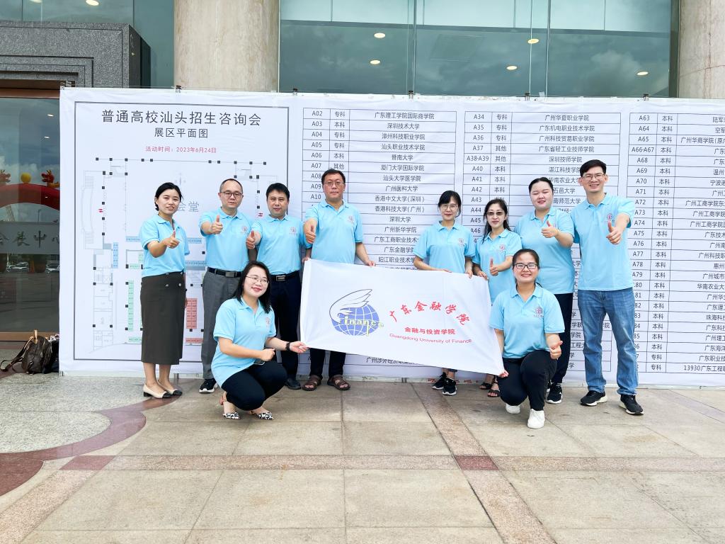 二、赴汕头、揭阳市开展招生宣传工作。6月23-25日,yl23411永利集团院长项后军、党委书记颜佩仪、副院长刘昊虹、副院长李日新、副院长孙进军、党委副书记黄镜秋一行11人赴汕头参加汕头市普通高校招生咨询会。宣传队伍热情、耐心地解答了学科专业、CFA、中外合作办学等问题,并发放了招生宣传资料。此外,为了进一步宣传展示学校改革发展新成就,加强学校与优质生源学校的情感联系,吸引更多优质生源报考永利yl23411,项后军院长一行奔赴揭阳市“优秀生源基地”揭阳第一中学榕江新城学校和揭东区第二中学举行授牌仪式,并进行招生宣讲和交流座谈,解答了我校及我院招生录取、转专业等相关问题。