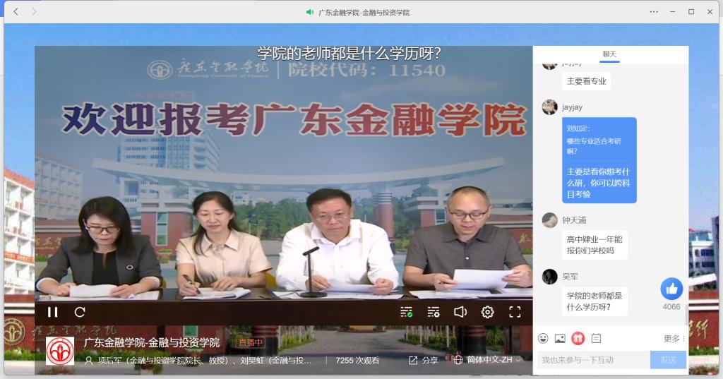 一、开展线上直播,宣传学科专业特色。6月12日下午3点,yl23411永利集团院长项后军、副院长刘昊虹、副院长孙进军、投资系主任胡妍组成的招生直播团队,从学院学科建设、师资队伍、专业特色、人才培养、社会实践、就业深造等角度,详细地展示了学院各专业的内涵和实力,全方位介绍了学院的特色和优势,并耐心地解答了直播间内考生及家长的提问,帮助考生及家长提前了解专业、就业前景,做到“专业选择有数,填报志愿有底”。1个小时的精彩直播,吸引了7200多人次在线观看和互动。