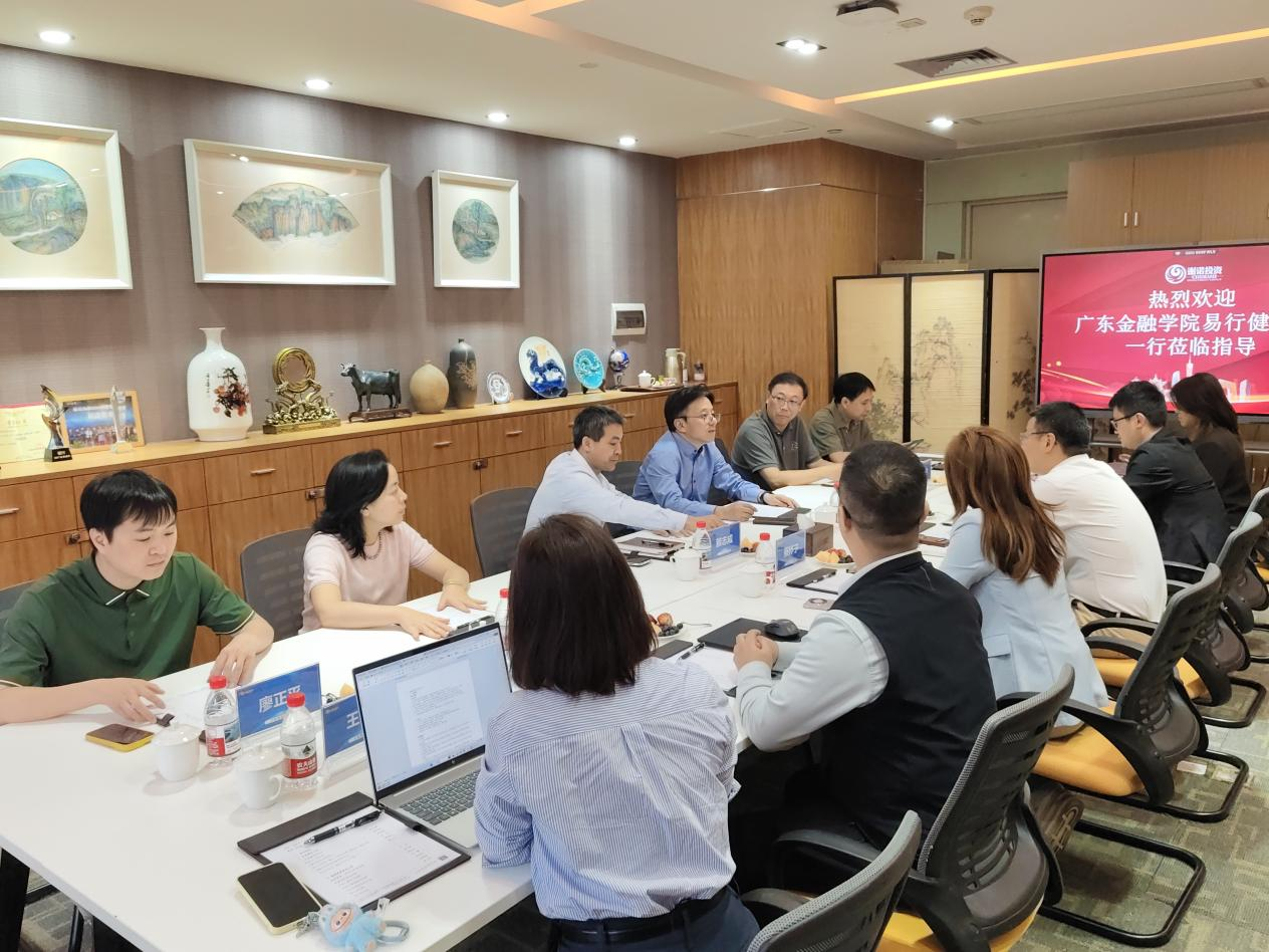 在华夏银行广州分行,易行健一行受到华夏银行广州分行党委书记、行长龙双和华夏银行广州分行党委委员、副行长吴润敏等领导的热烈欢迎。双方在会议室进行了深入座谈交流。龙双行长对易行健校长一行的到访表示诚挚欢迎,并详细介绍了华夏银行广州分行的发展历程、业务布局、人才需求以及近年来在支持地方经济发展和金融创新方面所取得的成就。他特别提到,华夏银行始终高度重视人才培养与引进,与广金的合作是实现优势互补、共同发展的重要途径,希望以此次访企拓岗为契机,进一步深化与学校在人才输送、实习实践、党建共建等方面的务实合作。易行健校长对华夏银行广州分行长期以来对学校教育事业的关心与支持表示感谢,并介绍了学校的办学特色、学科优势、人才培养成果以及毕业生就业基本情况。他指出,华夏银行作为国内知名的股份制商业银行,在金融领域具有深厚的底蕴和广泛的影响力,双方在人才培养目标上高度契合,希望通过此次走访,建立更加紧密的校企合作关系,共同探索校企协同育人新模式,为学生搭建更广阔的实践和就业平台,实现学校、银行、学生三方共赢。华夏银行广州分行人力资源部总经理胡海、华夏银行广州分行营销一部总经理裴爱国、华夏银行广州分行人力资源部副总经理罗娟出席座谈