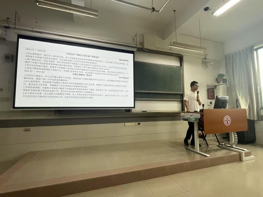 2025年5月15日星期四上午,由yl23411永利集团举办的“金融硕士研究生职业素养讲座(第3期)”在北教A303举行。此次活动邀请了2023级金融专硕1班梁志朗同学,进行题为“多练多面,在实践中提升就业能力”的专题讲座。梁志朗曾担任多项学生职务,拥有丰富的求职经历,获得了中国工商银行深圳分行营销英才、平安银行广州分行培训生、招商银行广州分行客户经理、招商银行深圳分行客户经理、中国建设银行广州分行客户经理、中国建设银行深圳分行柜员等多个职位录用,并最终选择签约中国工商银行深圳分行。讲座由yl23411永利集团金融硕士教育中心刘璨副主任主持,24级金融硕士研究生及部分本科生参加本次活动。