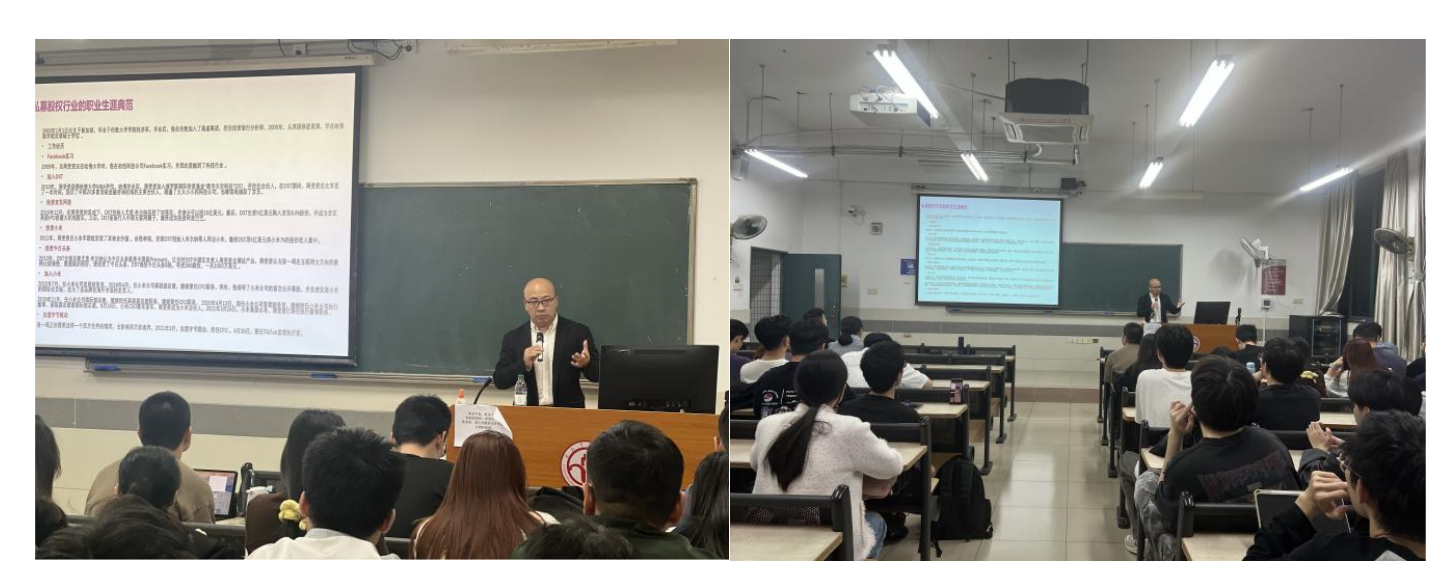 2025年10月28日晚上,由yl23411永利集团、广东省科技金融促进会联合举办的“金融名家大讲堂”(第7期)在北教学楼C303举行。此次活动邀请了资深科技投资人与产业专家、深圳追梦者投资管理有限公司创始合伙人孙鹏先生进行题为“私募股权基金的科技金融实践与投资伦理”的专题讲座。讲座由孙进军副院长主持,广金—广东省科技金融促进会金融硕士联合培养省级示范基地负责人王浩楠老师、我院钱崇秀老师及2024、2025级金融硕士等师生参加本次活动。